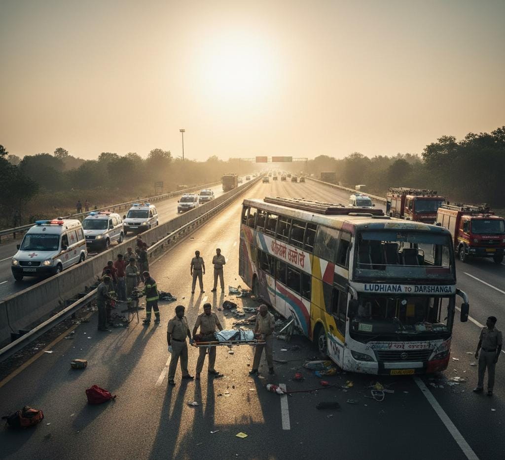 लखनऊ में पूर्वांचल एक्सप्रेस-वे पर भीषण सड़क हादसा: अनियंत्रित होकर पलटी डबल डेकर बस, 6 यात्रियों की मौत, 16 घायल
