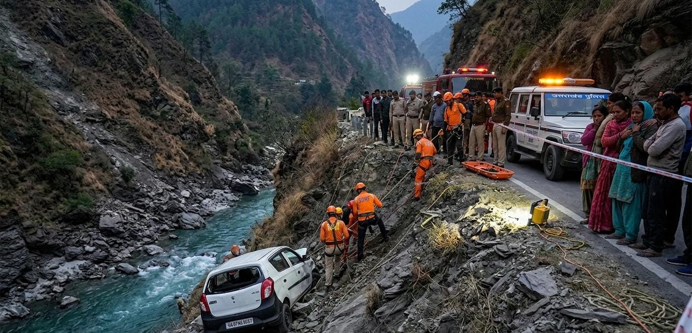 चकराता-मसूरी-त्यूणी हाईवे पर भीषण हादसा: 300 मीटर गहरी खाई में गिरी गाड़ी, एक की मौत, रेस्क्यू ऑपरेशन जारी