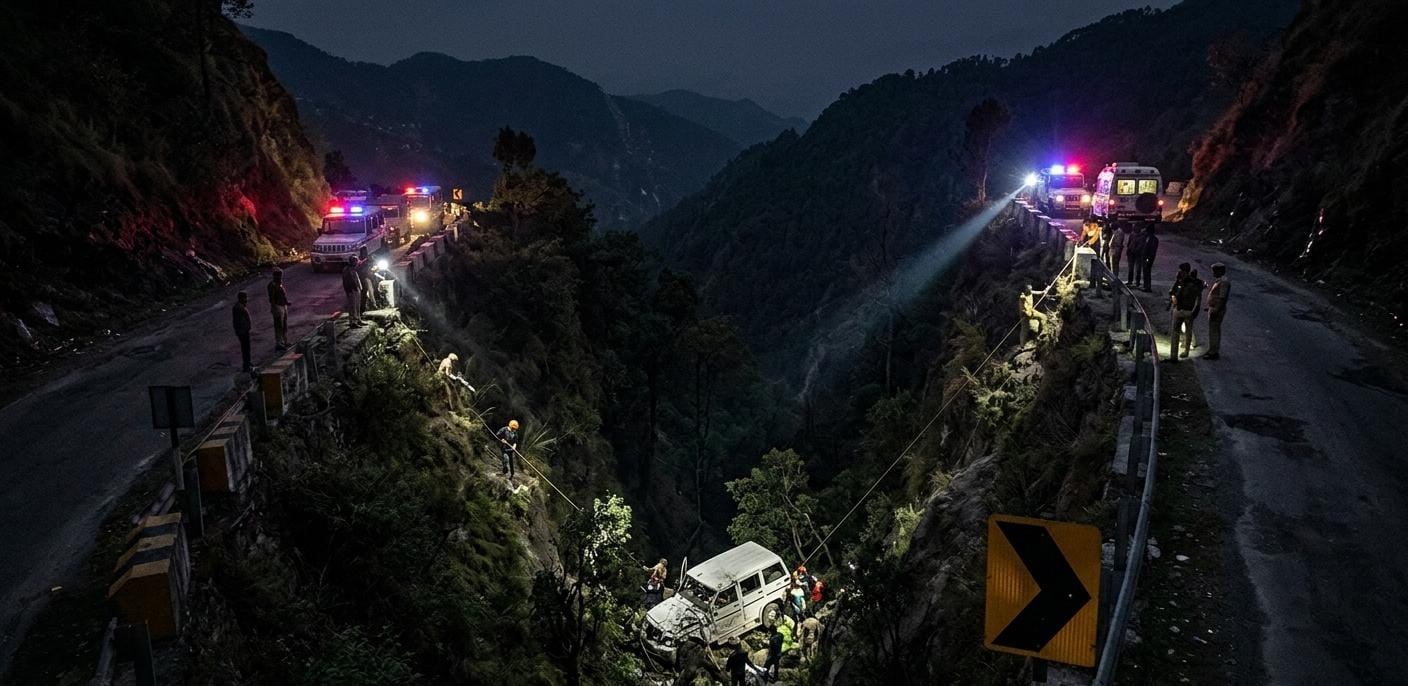 ”उत्तराखंड के चकराता-मसूरी-त्यूणी हाईवे पर एक दर्दनाक सड़क हादसा सामने आया है, जहाँ अनियंत्रित होकर एक सवारी गाड़ी 300 मीटर गहरी खाई में जा गिरी. इस हादसे में त्यूणी निवासी एक व्यक्ति की मौके पर ही मौत हो गई, जबकि पुलिस और रेस्क्यू टीमें अन्य संभावनाओं की तलाश में जुटी हैं. पढ़ें पूरी रिपोर्ट।”