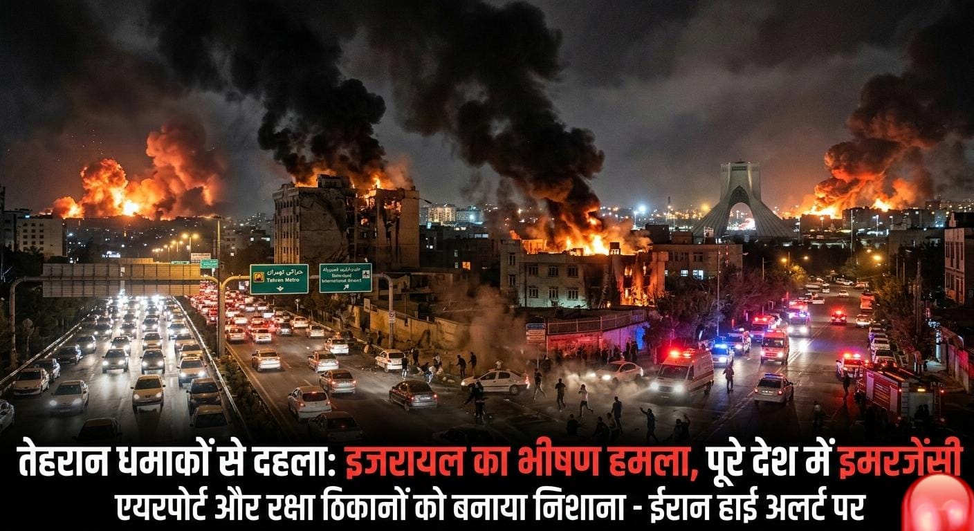 ”पश्चिम एशिया में युद्ध छिड़ गया है। इजरायल ने ईरान की राजधानी तेहरान समेत कई सैन्य ठिकानों पर भीषण मिसाइल हमले किए हैं। तेहरान में मेहराबाद एयरपोर्ट के पास धमाकों से पूरा देश दहल उठा है और ईरान में नेशनल इमरजेंसी घोषित कर दी गई है। जानिए इस महायुद्ध के भारत और दुनिया पर होने वाले असर की पूरी रिपोर्ट।”
