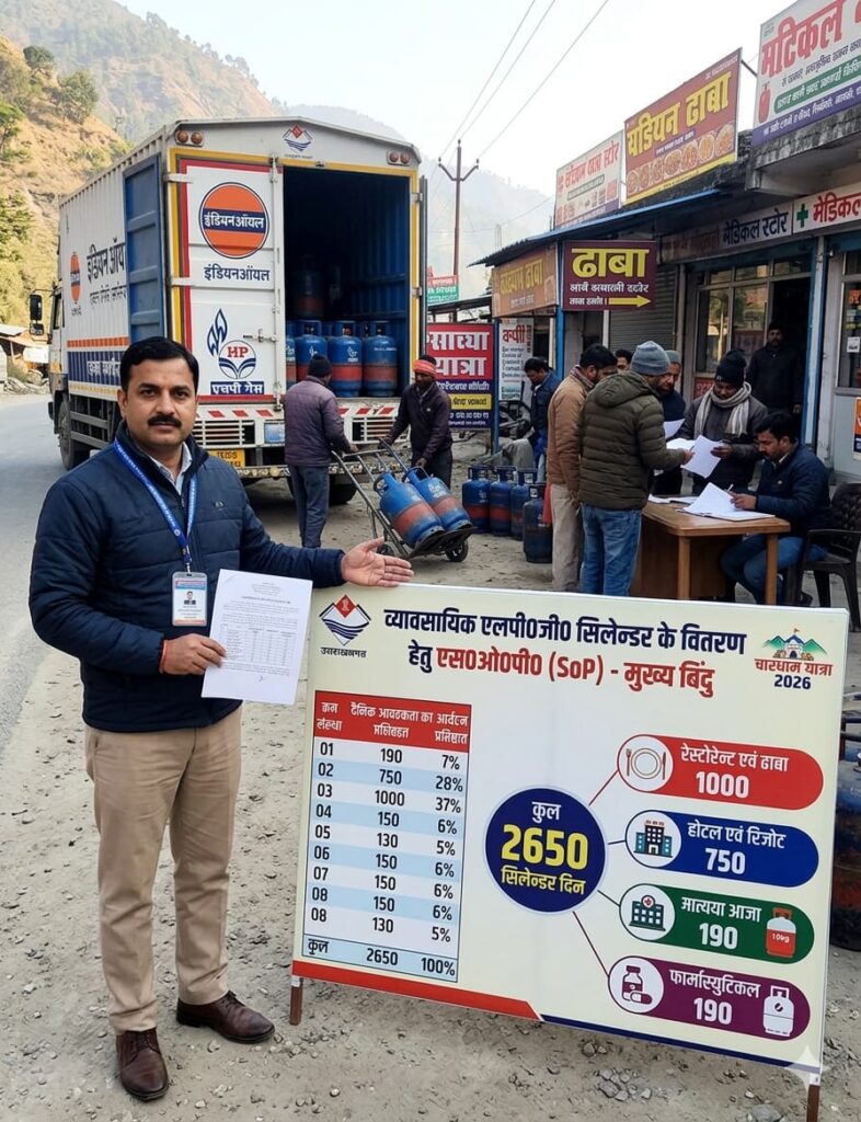 देहरादून: उत्तराखंड में आगामी चारधाम यात्रा और पर्यटन सीजन को देखते हुए धामी सरकार ने व्यावसायिक प्रतिष्ठानों को बड़ी राहत दी है। प्रदेश में कमर्शियल गैस सिलेंडरों की किल्लत और पर्यटन व्यवसायियों की चिंताओं को देखते हुए खाद्य नागरिक आपूर्ति एवं उपभोक्ता मामले विभाग ने एक विस्तृत SOP (Standard Operating Procedure) जारी की है। इस नई व्यवस्था के तहत अब प्रदेश में प्रतिदिन 2650 कमर्शियल गैस सिलेंडर वितरित किए जाएंगे।