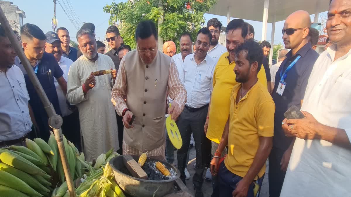 खटीमा दौरे पर सीएम धामी का अनोखा अंदाज, सड़क किनारे खुद भूना भुट्टा