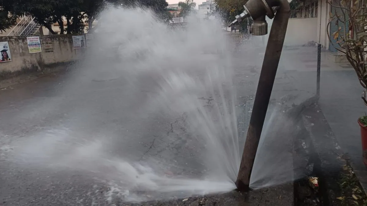 देहरादून: टर्नर रोड की गली में फायर हाइड्रेंट लीकेज से हड़कंप, तेज पानी के दबाव में फंसे स्कूली बच्चे और राहगीर
