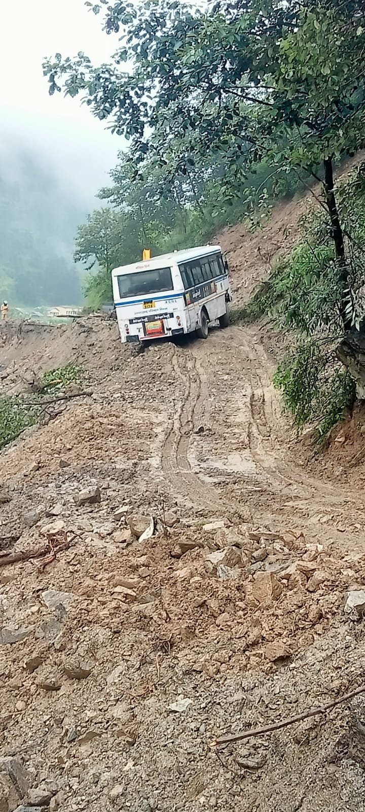 Uttarkashi Bus Accident: धराली में बड़ा हादसा टला, भूस्खलन जोन में बस फिसली; पिछला टायर सड़क से बाहर लटक गया